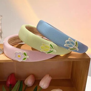 郁金香花朵发箍女夏季高颅顶发捆百搭外出显脸小发卡森...