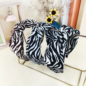 韩版早秋款发箍女复古豹纹交叉拧结压发头箍可爱森系蝴...