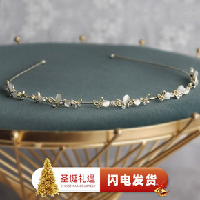 韩尚复古电镀叶子水晶发箍 树叶头箍合金发卡五片叶子...