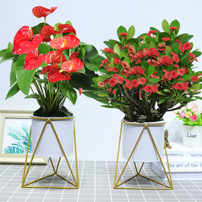 发财树绿萝盆栽室内栀子花卉红白掌金钱树欧式铁架铁海...