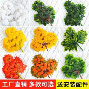 仿真榕树叶红枫叶室内假树银杏叶子塑料树枝工程造景绿...