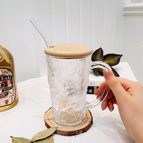 韩版ins风玻璃杯带把果汁咖啡杯岩石杯雨雾带盖吸管...