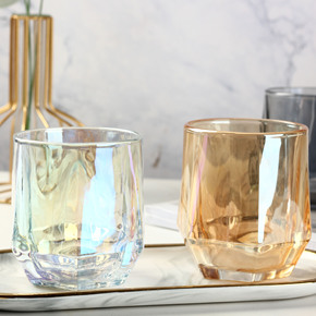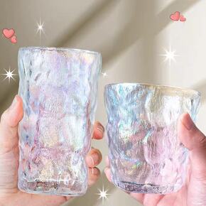 冰川纹玻璃杯七彩杯高颜值网红家用果汁牛奶杯水杯促销...