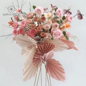 玫红色主题婚庆仿真花批发 玫红色婚礼堂假花路引花花...