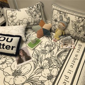 新品文艺黑白色美式简约乳胶夏凉席三件套可水洗1.5...