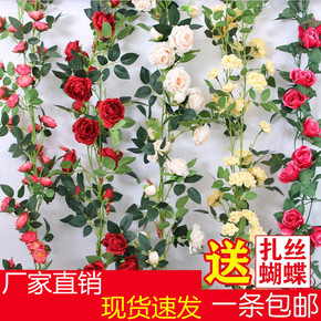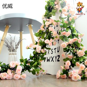 仿真玫瑰花藤条壁挂假花藤水管道空调管室内客厅装饰吊...