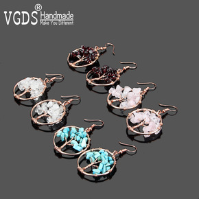 新款时尚夸张欧美流行耳环 创意手工碎石生命树耳饰电...