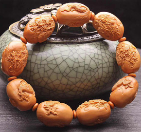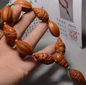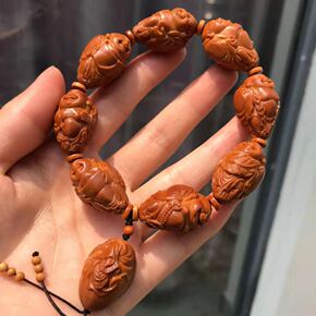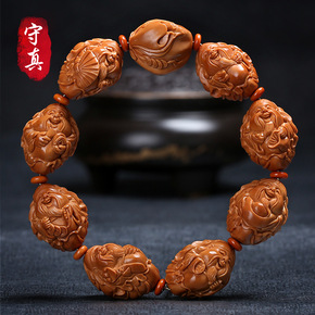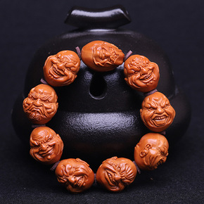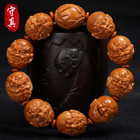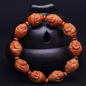 文玩橄榄核雕刻笑口常开手串老红油核雕刻手链橄榄核胡...