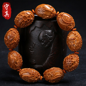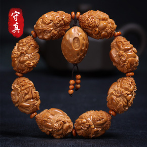 厂家直供老油核橄榄核雕刻观音赐福手串手链 雕刻观音...