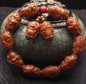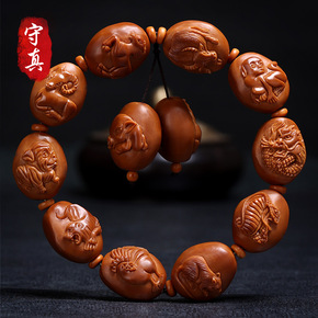 厂家直供橄榄核雕荷叶版十二生肖手串红油核手工雕刻动...