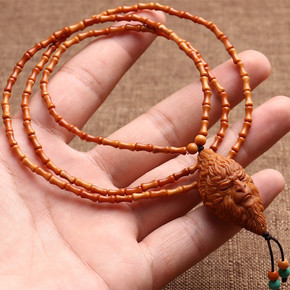 橄榄核手工雕刻竹节御龙大圣项链脖挂 橄榄胡核猴头手...