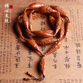 厂家直供橄榄核雕刻龙腾四海搭配金饭碗脖挂长串项链手...
