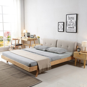 北欧实木床1.5米 1.8米单双人原木色经济型现...