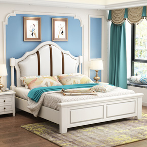欧式实木床白色现代简约1.8米双人主卧床1.5米美...