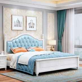 实木床1.5米双人床主卧室现代简约美式实木软包婚床...