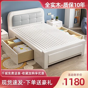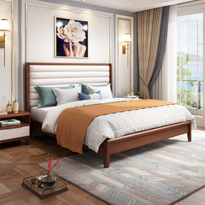 美式实木床双人床1.8米主卧现代简约1.5米床经济...