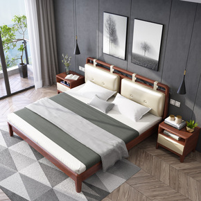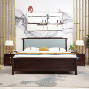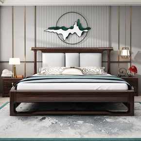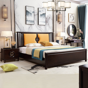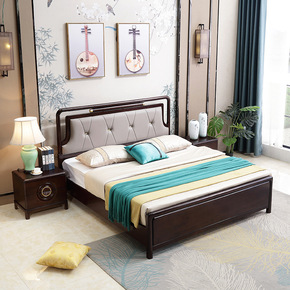 新中式实木床现代简约主卧1.8米双人床 软靠婚床轻...