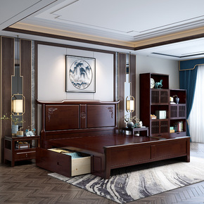 新中式实木床1.8米双人床现代简约1.5高箱储物主...