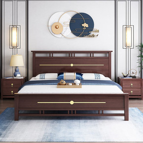 新中式实木床主卧1.8米全实木大床双人现代简约轻奢...