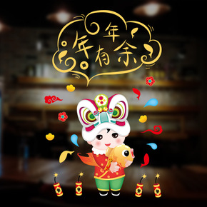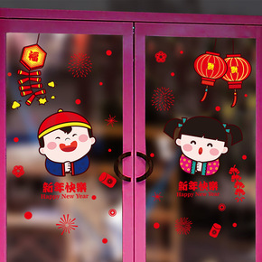 橱窗玻璃可移除贴画春节过年装饰新年门贴XL639福...