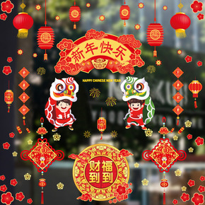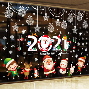 厂家批发新年墙贴玻璃可移除橱窗贴花双面可视贴纸可一...
