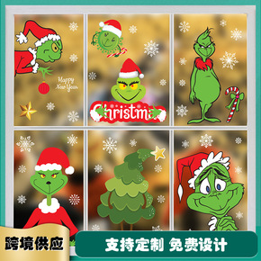 跨境贴纸墙贴静电贴橱窗玻璃贴画圣诞绿怪杰Grinc...