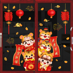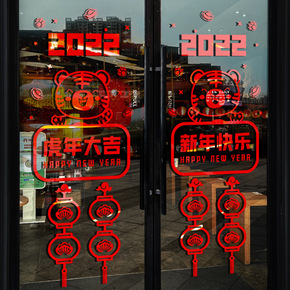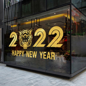 2022新年贴纸虎年元旦商场店铺橱窗玻璃贴春节虎年...