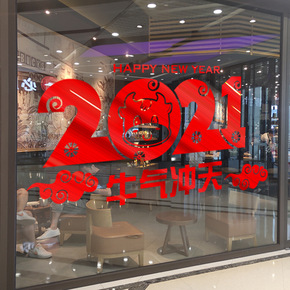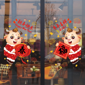 元旦新年装饰墙贴春节生肖牛年贴画过年商场门贴橱窗玻...