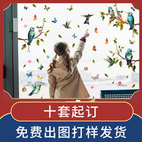 JUV207树枝蜂鸟蝴蝶静电贴玻璃贴窗户橱窗墙贴纸...