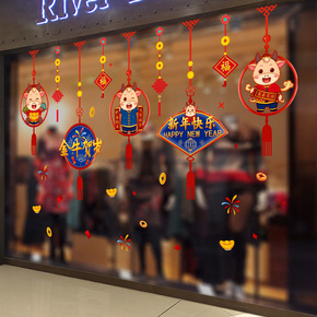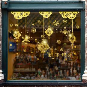 新年吊坠闪粉布置用品贴纸橱窗贴窗花春节玻璃门贴墙贴...
