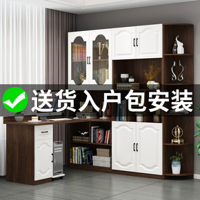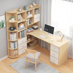 。电脑台式桌书桌书柜一体桌家用写字桌转角办公桌多功...