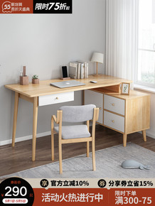 北欧全实木书桌家用双人学习桌橡木桌子卧室电脑桌书房...