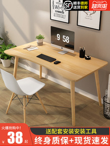 电脑桌台式北欧书桌简约家用学生卧室写字桌现代实木简...
