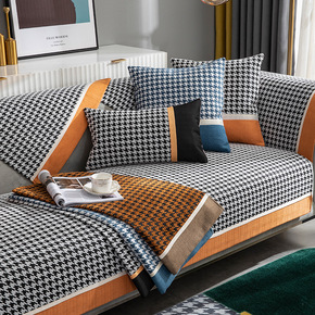 雪尼尔沙发垫四季通用布艺防滑坐垫子北欧简约千鸟格盖...