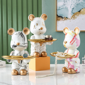 暴力熊玄关钥匙收纳摆件客厅电视柜家居桌面托盘装饰品...