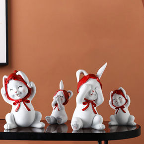 北欧可爱兔子电视柜酒柜摆件卧室书架治愈系办公桌小物...