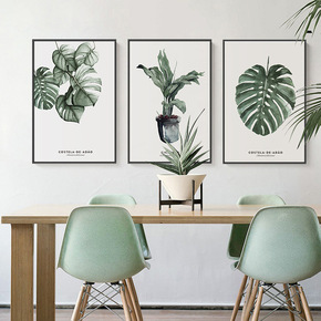 北欧轻奢金箔叶子装饰画画芯高端植物树叶三联画客厅装...