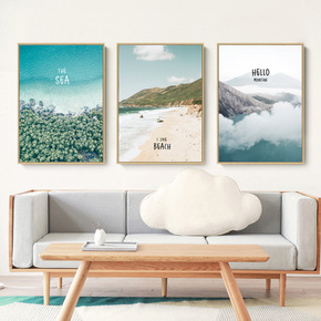 北欧现代风景画海景画自然风景山河装饰画芯客厅沙发背...