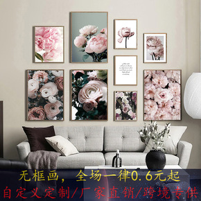 北欧粉色鲜花装饰画简约英文名言组合画客厅沙发酒店墙...