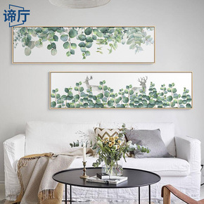 北欧现代自然风景干花干草鹿群牛组合装饰画客厅沙发背...