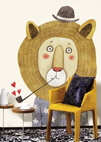 5D个性创意手绘动物头像壁纸北欧艺术玄关餐厅壁画熊...