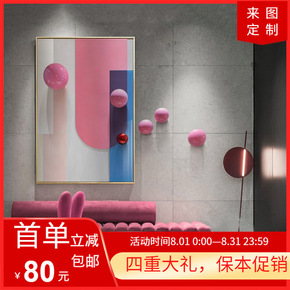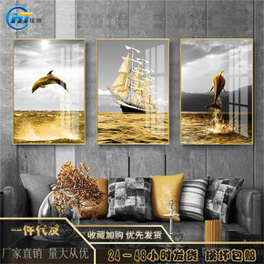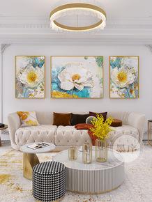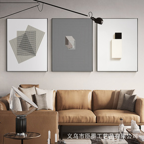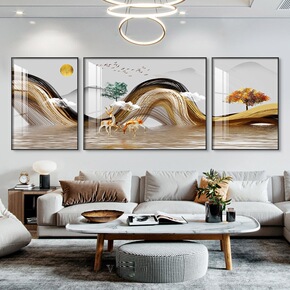 北欧风格沙发背景墙轻奢晶瓷画镶钻客厅装饰画大气三联...