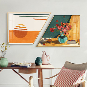 简约现代抽象几何北欧复古海报橙色艺术客厅装饰画挂画...