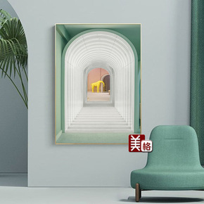 北欧客厅玄关装饰画孔雀油画竖版过道自粘墙贴画走廊喷...