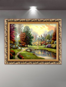 田园手绘油画玄关k挂画客厅书房壁画北欧风格村庄走廊...