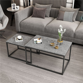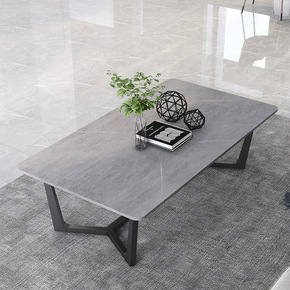 现代简约创意大理石长方形茶几桌灰色岩板茶几组合北欧...