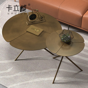 北欧客厅铁艺茶几套装简约风沙发边几玄关茶桌金色花纹...