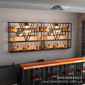 北欧餐厅壁挂式墙上酒柜酒杯架工业风创意吧台上墙置物...