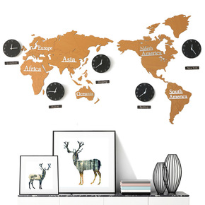 世界地图挂钟北欧客厅钟表个性创意办公室墙面装饰背景...