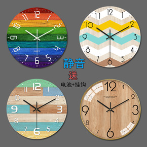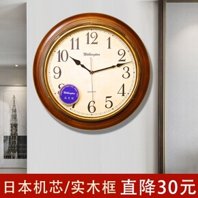 北欧实木石英钟表挂钟客厅现代简约时尚日式家用钟饰原...